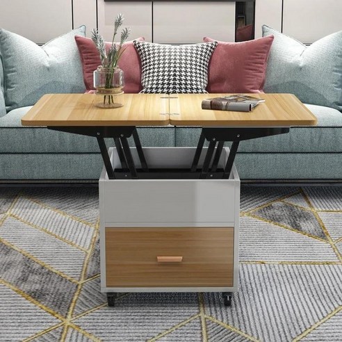거실리프트테이블 리프트업소파테이블 다기능 접이식 및 리프팅 커피 이중 목적 확장형 간단한 가정용 이동용 바퀴 포함, 7) All solid wood A