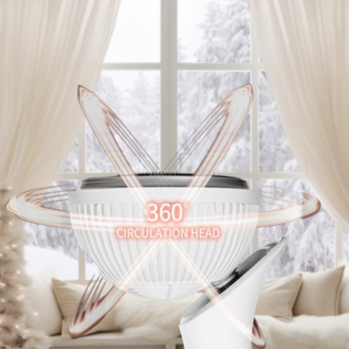 또한 온풍기 형태의 디자인으로 인해 온기를 방전시키는 속도가 빠르고 넓은 범위로 고효율적으로 난방을 할 수 있습니다. 이 외에도 써큘레이터 기능을 갖추고 있어서 공간 내의 공기를 순환시키며 온기를 고르게 분배할 수 있습니다. 이를 통해 난방 효율을 극대화하고 찬 공간을 온화하게 만들 수 있습니다.