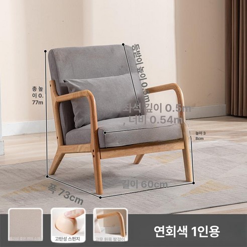 1인 원목 독서의자 스툴 접이식 북유럽 윙체어 휴식, 라이트 그레이-원목-단인 A