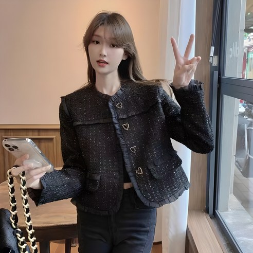 SAHINER 여성 가을 패션 트위드자켓 기본 편안한 긴팔 코트 WT06